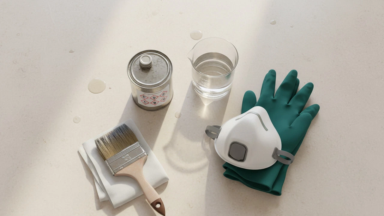 Hautkontakt ist durch Schutzhandschuhe zu vermeiden. Nitril- oder Butylkautschuk-Handschuhe bieten ausreichenden Schutz, während Latex unwirksam ist. Arbeitskleidung sollte gewechselt werden, um Verschleppung in Wohnbereiche zu vermeiden. Pausen sind außerhalb des belasteten Raums einzulegen. Die Entsorgung von Resten erfolgt als Sonderabfall, nicht über Ausguss oder Restmüll. Die Einhaltung dieser Maßnahmen minimiert Gesundheitsrisiken deutlich.